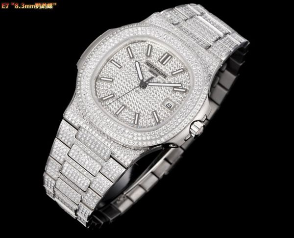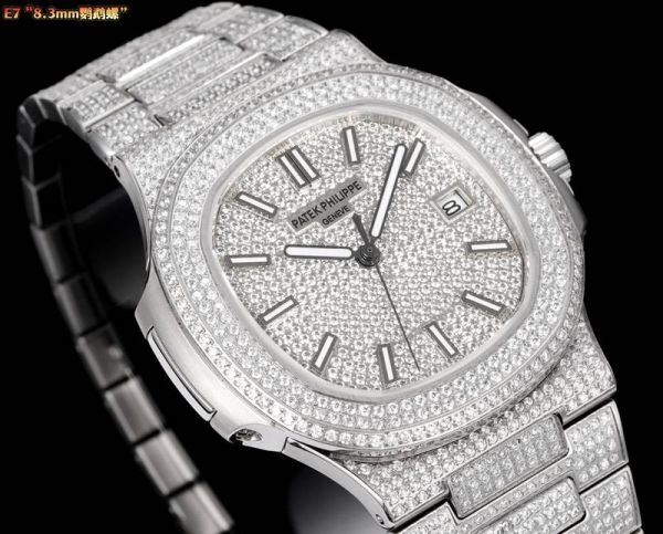 E7 Factory Patek Philippe Nautilus Cal.324 Movement 316L Steel 40mm Diamond Dial Watch with Scales