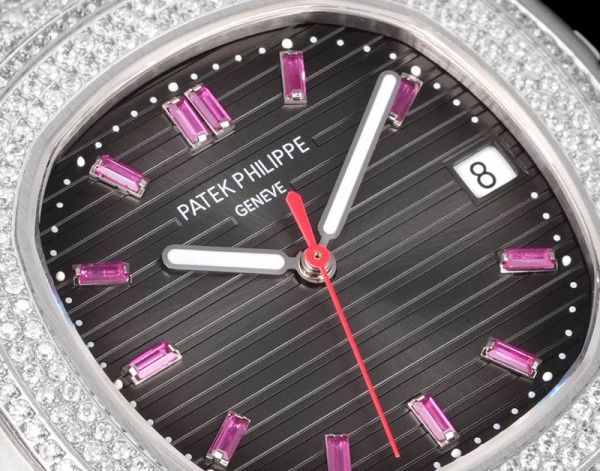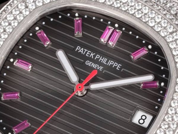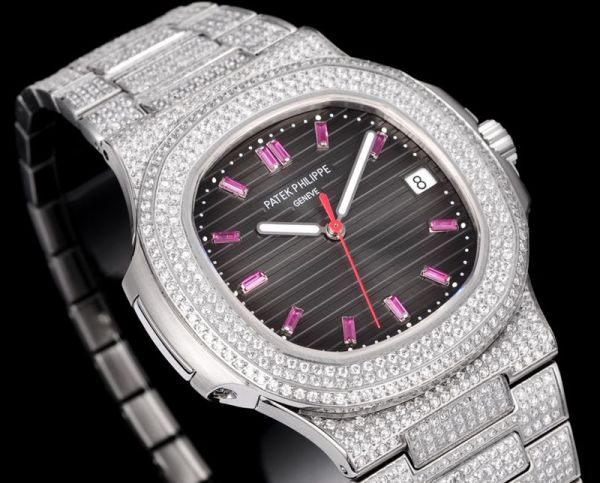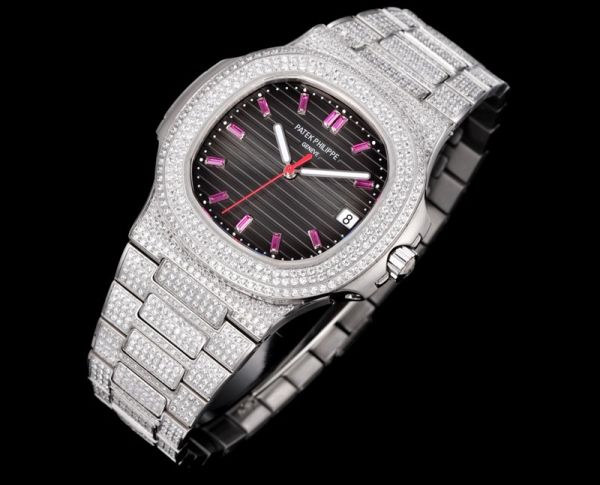 Patek Philippe Nautilus Fake 9015 Movement 316LSteel 40mm Full Diamond With Pink Scales Men Watch