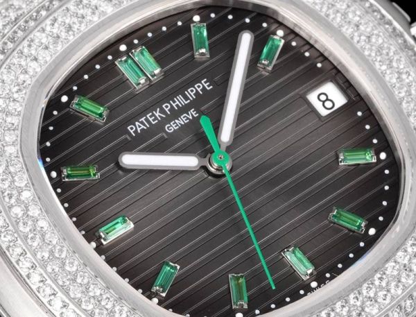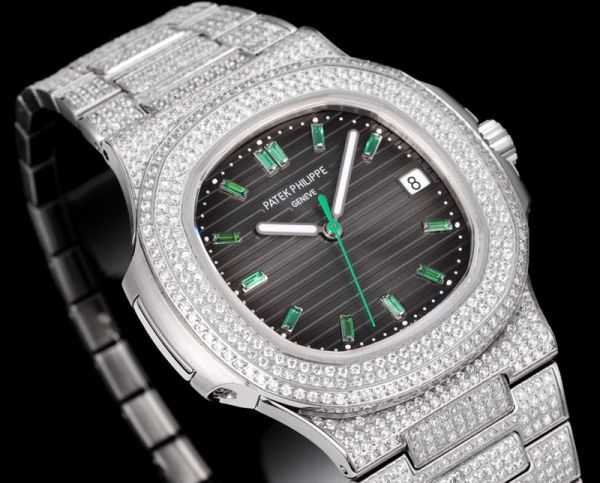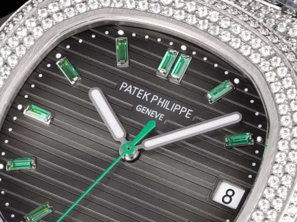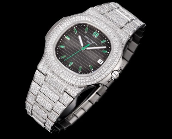Patek Philippe Nautilus Fake 9015 Movement 316LSteel 40mm Full Diamond With Green Scales Men Watch