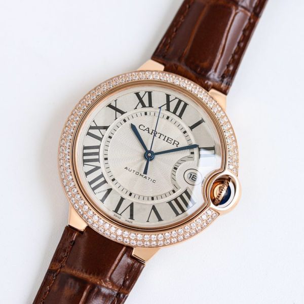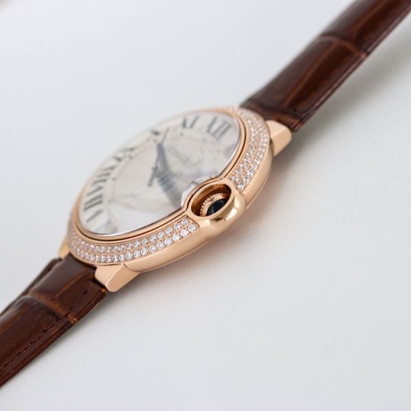 TW Factory Ballon Bleu De Cartier 40mm 2824 Movement White Face Brown Leather Strap Diamond Bezel Watch